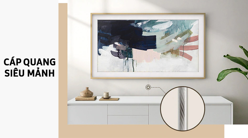 Cáp Quang Siêu Mảnh, cáp Quang Siêu Mảnh loại bỏ các kết nối dư thừa, mang đến vẻ đẹp tinh gọn cho không gian xung quanh. Hòa quyện tinh tế The Frame vào mọi cấu trúc nội thất với dây cáp ẩn bên trong hộp One Connect Box.