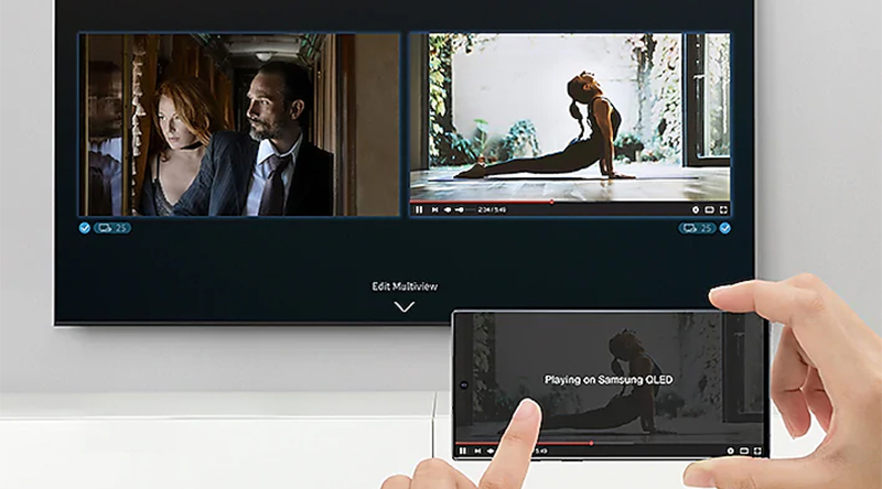Tính năng này hỗ trợ tương tác hoàn hảo giữa TV và Smart Phone. Bằng việc đưa nội dung trên điện thoại lên TV và chia đôi màn hình, bạn sẽ không bị lỡ các nội dung trên TV và Smart phone nữa.
