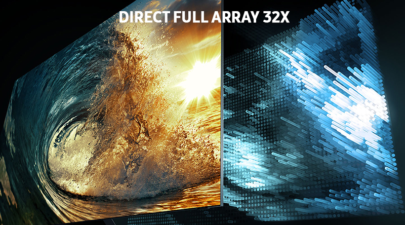 Công nghệ đèn nền Direct Full Array 32x tạo màu đen thuần túy và chống lóa sáng.