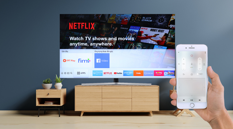 Smart Tivi Samsung được trang bị các ứng dụng có sẵn: YouTube, Netflix, FPT Play, Fim+,... hoặc bạn có thể vào kho ứng dụng để tải thêm (FPT Play, Fim+, Benthanh Karaoke, Spotify, MyTV, ClipTV) thỏa sức xem phim, nghe nhạc,...