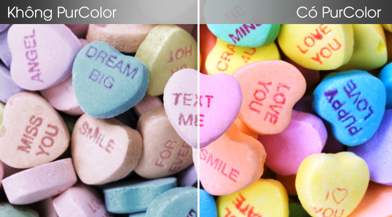 Công nghệ PurColor làm tái hiện các dải màu lục, lam, vàng, tím,… đa dạng hơn để tivi được tăng cường thêm nhiều dải màu sắc rực rỡ hơn, cho những hình ảnh thêm gần với tự nhiên nhất.