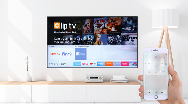 Điều khiển tivi bằng điện thoại: Bằng ứng dụng SmartThings Kết nối không dây với điện thoại, máy tính bảng: Chiếu màn hình Screen Mirroring Kết nối Bàn phím, chuột: Có thể kết nối (sử dụng tốt nhất trong trình duyệt web)