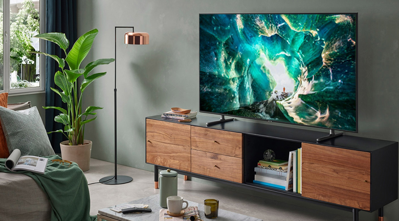 Smart tivi Samsung 4K 55 inch UA55RU8000 sở hữu thiết kế mỏng, hiện đại mang đến không gian sống đẳng cấp, sang trọng về căn phòng bạn.
