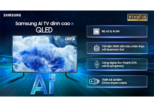 Samsung QA85Q8F thuộc dòng TV QLED cao cấp, sở hữu màn hình 85 inch độ phân giải 4K sắc nét, tích hợp công nghệ AI thông qua Bộ xử lý AI Q4 mạnh mẽ, giúp tối ưu hóa mọi khía cạnh từ hình ảnh và âm thanh