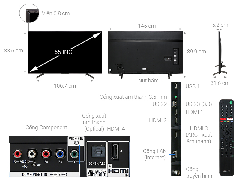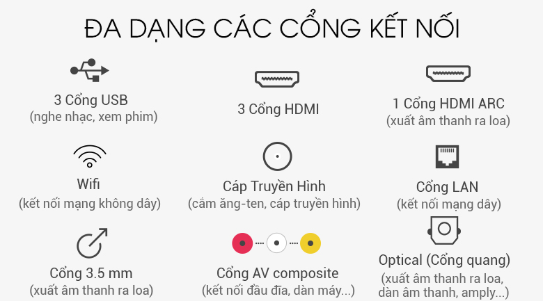 Cổng Optical (Digital Audio Out), Jack loa 3.5 mm, HDMI ARC