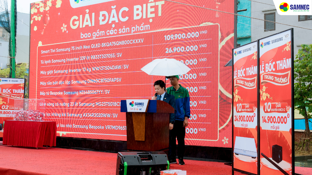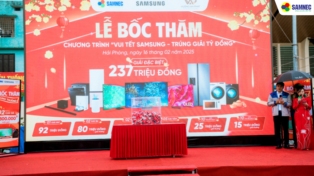 Ngày 16/02/2025, Samnec đã tổ chức buổi lễ bốc thăm trúng thưởng "Vui Tết Samsung - Trúng giải tỷ đồng" dành cho những khách hàng mua hàng tại Hệ thống Điện máy Samnec từ 12/12/2024 đến hết 31/01/2025.