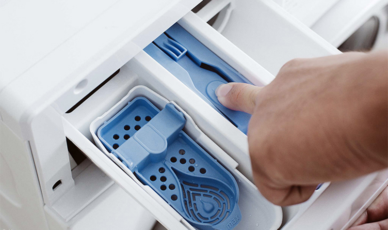 Khay đựng bột giặt tiện lợi chống vón cục với những lỗ nhỏ, đồng thời bạn cũng có thể lấy ra dễ dàng để vệ sinh với thao tác nhấn vào kéo ra.
