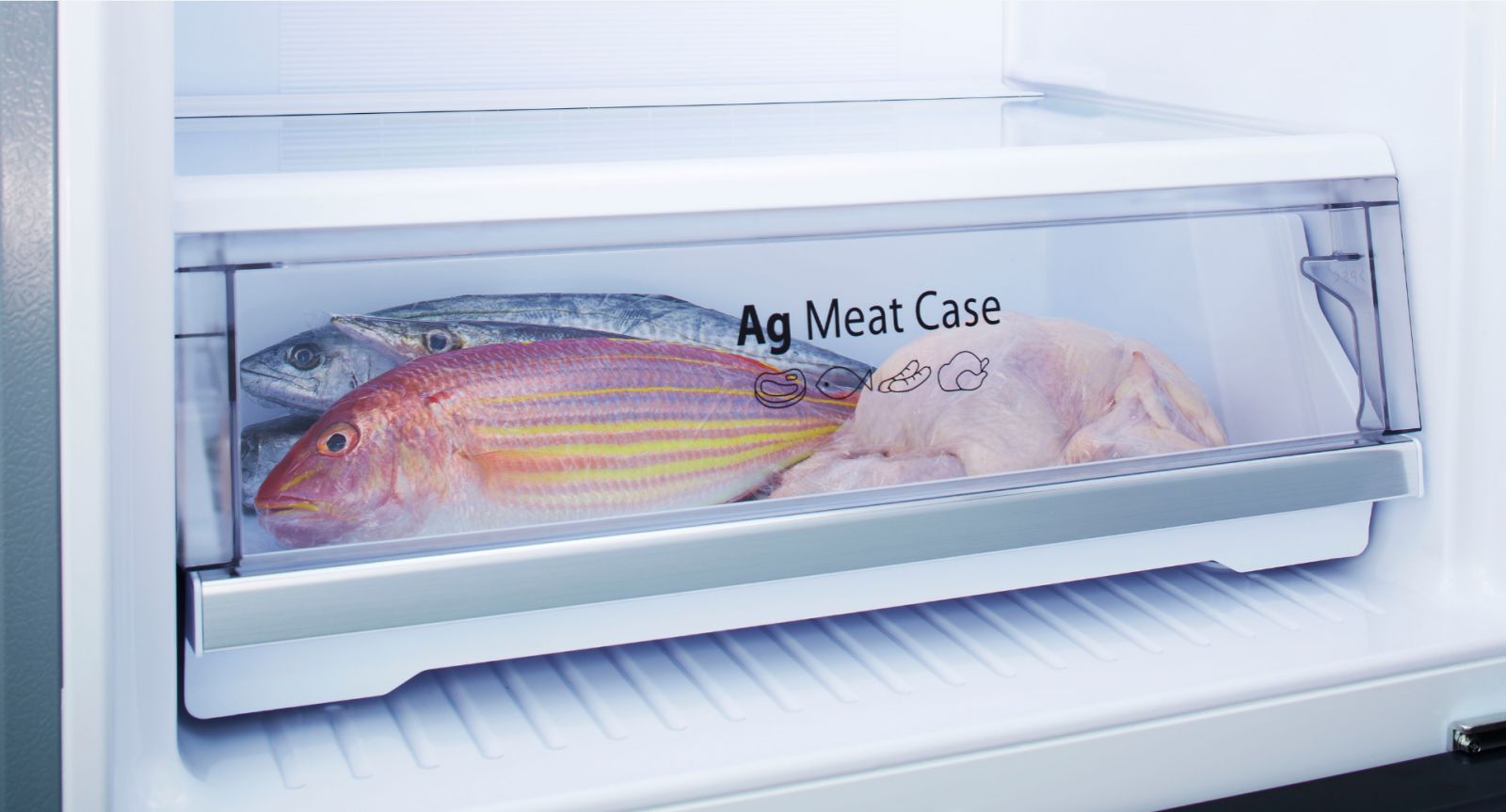 Ngăn trữ thịt cá riêng biệt trên ngăn đá cho phép bạn bảo quản đông đá các món tươi sống như thịt, cá, hải sản,... và không lo chúng lan tỏa mùi, để tránh làm ảnh hưởng đến các thực phẩm khác trong tủ.