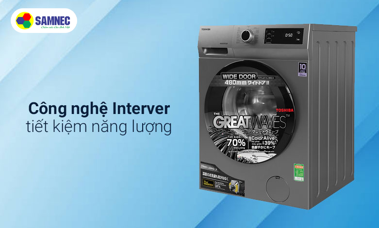 - Thêm vào đó, nhờ có công nghệ Inverter, máy giặt Toshiba này sử dụng điện và nước tiết kiệm hơn trong mỗi chu trình giặt.