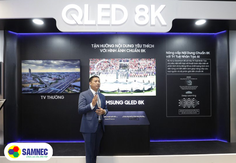 Tại không gian trưng bày, khách mời được trực tiếp trải nghiệm các tính năng nổi trội của sản phẩm TV QLED 8K 2020. Được trang bị bộ xử lý lượng tử 8K (Quantum Processor 8K) thế hệ mới cùng tính năng nâng cấp hình ảnh bằng trí thông minh nhân tạo, sản phẩm mang đến trải nghiệm hình ảnh chuẩn 8K sắc nét với màu sắc đúng chuẩn như phim Hollywood, ngay cả khi đang xem chương trình với độ phân giải thấp hơn.