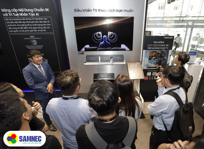 Khách mời được giới thiệu các tính năng nổi trội của sản phẩm TV QLED 8K 2020, đặc biệt là công nghệ Nâng cấp hình ảnh bằng trí tuệ minh nhân tạo có kết hợp khả năng học sâu