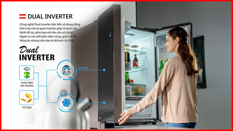 Công nghệ Dual Inverter, kết hợp giữa máy nén và quạt giúp tiết kiệm điện tối ưu.