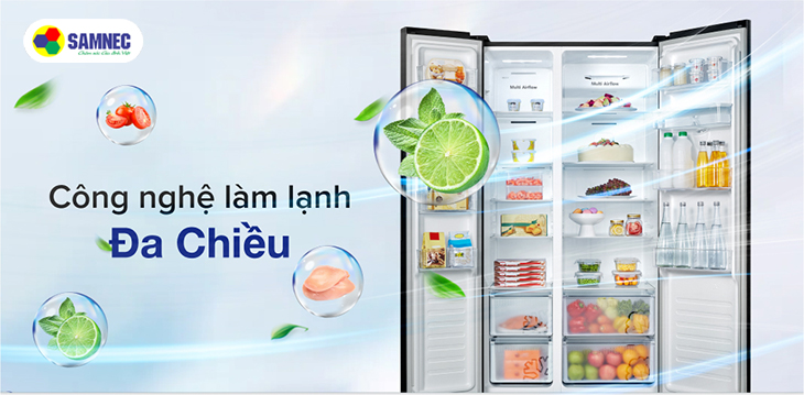 Tủ lạnh Casper sử dụng công nghệ làm lạnh đa chiều giúp khí lạnh lan tỏa đến mọi ví trí trong tủ, duy trì nhiệt độ thích hợp cho từng ngăn để bảo quản thực phẩm tươi ngon và trọn vẹn hơn.