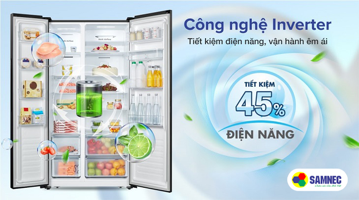 Công nghệ Inverter trang bị cho tủ lạnh Casper giúp hạn chế tối đa tiếng ồn và duy trì nhiệt độ ổn định. Ngoài ra, công nghệ này còn giúp người dùng tiết kiệm khoảng 45% điện năng tiêu thụ, giảm chi phí tiền điện hàng tháng.
