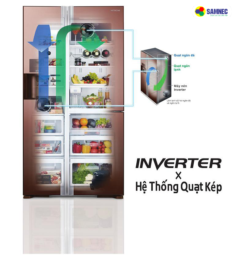 Đây là công nghệ sử dụng 2 quạt gió riêng biệt cho ngăn đông và ngăn mát, nhờ đó tủ lạnh Hitachi nâng cao khả năng làm lạnh tức thì cho mỗi ngăn tủ, đảm bảo thực phẩm được lưu trữ ở nhiệt độ thích hợp.