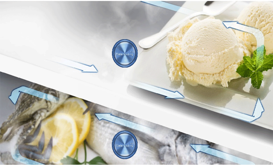Với hệ thống hai dàn lạnh độc lập làm lạnh hai ngăn đá và ngăn mát riêng biệt này không có sự luân phiên chuyển giao luồng khí lạnh giữa ngăn mát và ngăn đá, thức ăn sẽ không bị lẫn những mùi vị khó chịu từ các loại thực phẩm tươi sống của ngăn đông như mùi tanh của cá. Do đó, giữ được sự tròn vị từ thức ăn đồng thời giữ độ ẩm vượt trội lên đến 70%.
