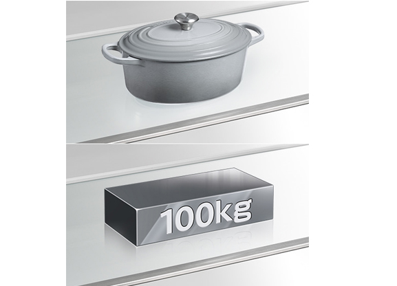 Các khay bên trong tủ lạnh được làm từ thủy tinh bề mặt chống trầy xước, chịu nhiệt và chịu lực nặng lên tới 100kg.