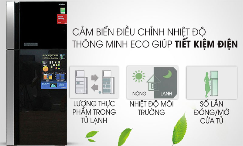 Bên cạnh Inverter, cảm biến nhiệt Eco cũng là một ưu điểm của tủ lạnh. Với cảm biến nhiệt Eco, tủ lạnh có thể tự điều chỉnh công suất hoạt động nhằm đảm bảo nhiệt độ bên trong được cân bằng bên ngoài tủ, thói quen đóng/mở tủ và lượng thực phẩm đang được bảo quản, góp phần đảm bảo cho thực phẩm vẫn được làm lạnh tốt mà không lãng phí điện.