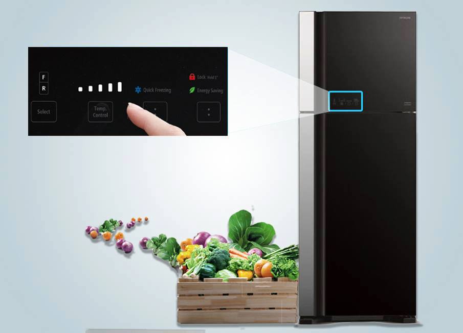 Tủ lạnh Hitachi R-FG560PGV8X(GBK) trang bị bảng điều khiển cảm ứng được đặt nằm ngay ngoài cánh tủ trên, cho phép người dùng thuận tiện điều khiển. Với giao diện cảm ứng thông minh minh, bạn chỉ cần chạm hoặc vuốt nhẹ là có thể thiết lập được chế độ hoạt động mới cho tủ lạnh.