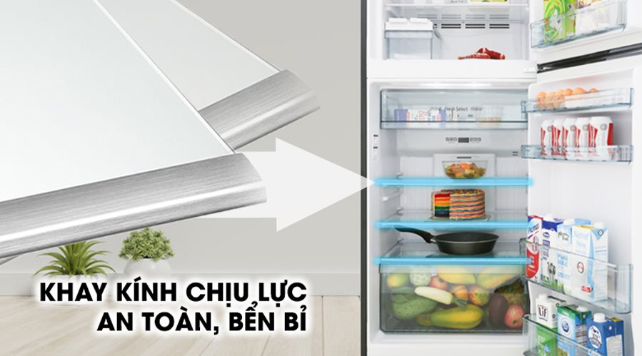 Tủ lạnh Hitachi R-FG560PGV8X(GBK) có khay kính chịu lực cao với khả năng chịu lực lên đến 100kg. Nhờ khay kính này, dù nhiều thực phẩm đựng trên khay kính, bạn cũng không cần lo sợ rằng chúng sẽ bị hỏng.