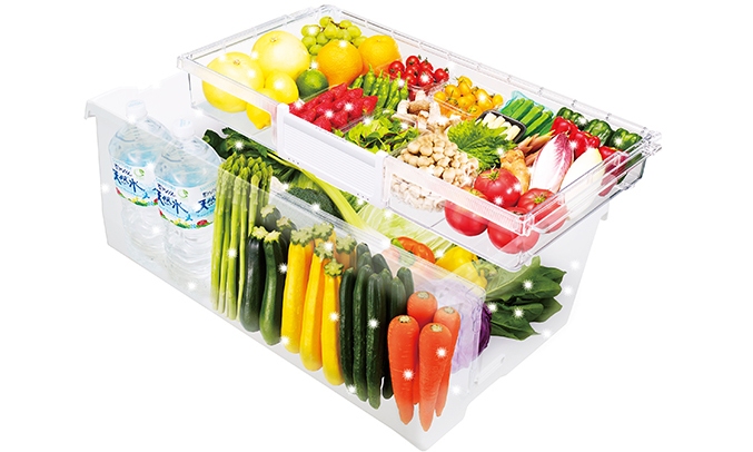 Tủ lạnh Hitachi Inverter sở hữu ngăn Aero-care được thiết kế độc đáo giúp duy trì độ tươi ngon và dưỡng chất trong rau củ quả nhờ chất xúc tác Platinum. Ngoài ra, cấu trúc đệm kín khí của ngăn được cải tiến giúp tăng cường và kiểm soát độ ẩm.