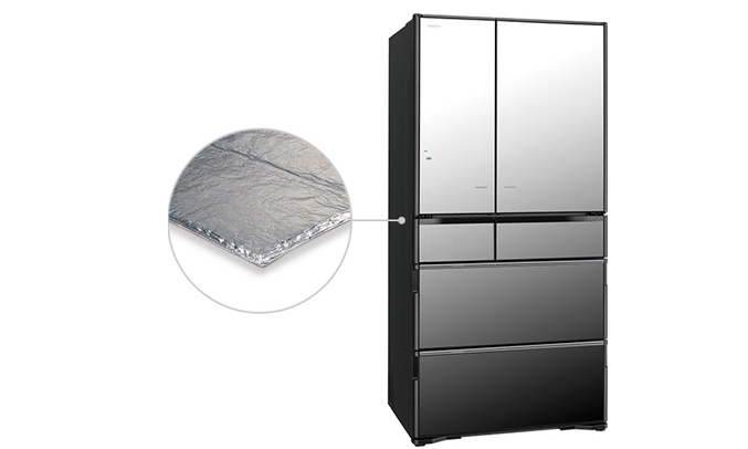 Tủ lạnh Hitachi Inverter 735 lít R-ZX740KV (X) sở hữu tấm cách nhiệt chân không VIP nguyên bản của Hitachi là một tấm cách nhiệt bằng chân không mỏng, cho hiệu quả cách nhiệt cực cao. Bộ phận còn giúp tiết kiệm năng lượng hơn rất nhiều so với vật liệu cách nhiệt truyền thống Urethane, bằng cách ngăn nhiệt từ môi trường bên ngoài xâm nhập vào trong hoặc nhiệt từ bên trong thoát ra ngoài, đồng thời tăng thêm dung tích chứa của tủ lạnh.