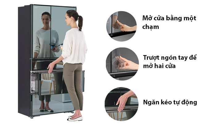 Cửa, ngăn kéo tự động mở cửa bằng công nghệ cảm ứng (chạm mở 1 cửa, trượt mở 2 cửa)