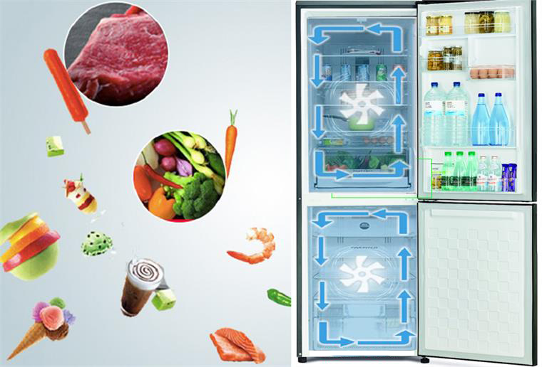 Hệ thống này trang bị 2 quạt làm lạnh riêng ở hai ngăn tủ mang luồng khí mát đến nhiều vị trí khác nhau, giúp toàn bộ tủ đều được làm lạnh đồng đều và duy trì ổn định nhiệt độ. Với tính năng này, các thực phẩm sẽ được bảo quản một cách tốt hơn.