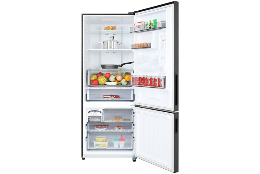 Tủ lạnh được trang bị các khay chứa và khay ngăn kệ có khả năng chịu lực tốt và vô cùng bền bỉ giúp bạn có thể chứa được một lượng lớn thực phẩm và yên tâm trong quá trình bảo quản.