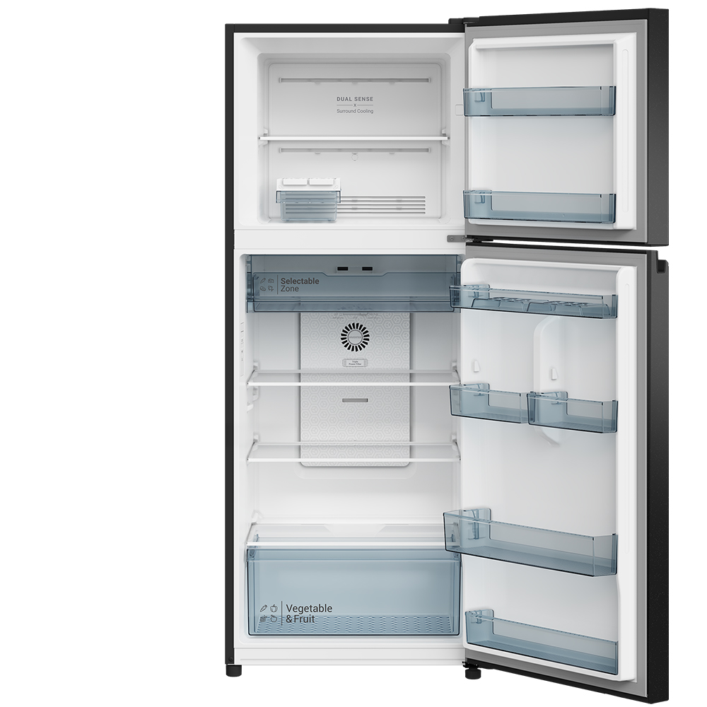 - Trang bị nhiều khay, kệ, hộc chứa được thiết kế bên trong thân tủ và ở 2 cánh cửa giúp cung cấp cho người dùng nhiều vị trí để cất giữ các loại thực phẩm thuận tiện, ngăn nắp.
