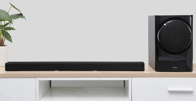 Hệ thống loa Samsung 2.1 kênh, công suất loa mạnh mẽ 150W.