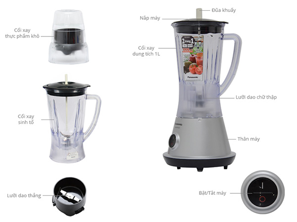 Máy xay sinh tố Panasonic sở hữu linh kiện cấu thành với chất lượng tốt mang đến sự tiện dụng và bền bỉ nhất cho người sử dụng. Lưỡi dao được làm bằng thép không gỉ, côi xay bằng nhựa cao cấp giúp đảm bảo sức khỏe cho người nội trợ, và đồng thời với thiết kế lưỡi dao dễ dàng tháo rời, giúp bạn thuận tiện trong việc làm sau khi sử dụng và để máy luôn giữ được ngoại hình như mới.