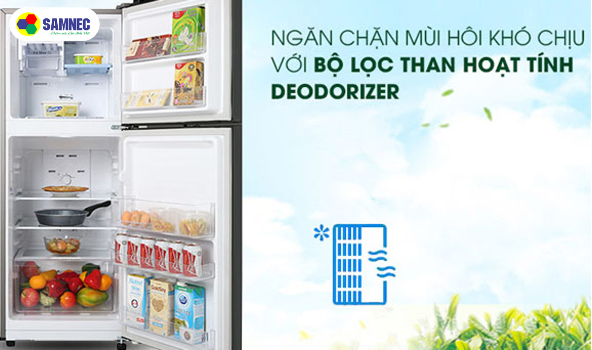 Bộ lọc Deodorizer được tích hợp có khả năng loại bỏ nấm mốc và vi khuẩn, đặc biệt giảm mùi hôi, tanh của một số loại thực phẩm khi đi qua bộ lọc than hoạt tính, từ đó tủ lạnh của bạn luôn có không gian tươi mát và thực phẩm được giữ tươi lâu hơn.