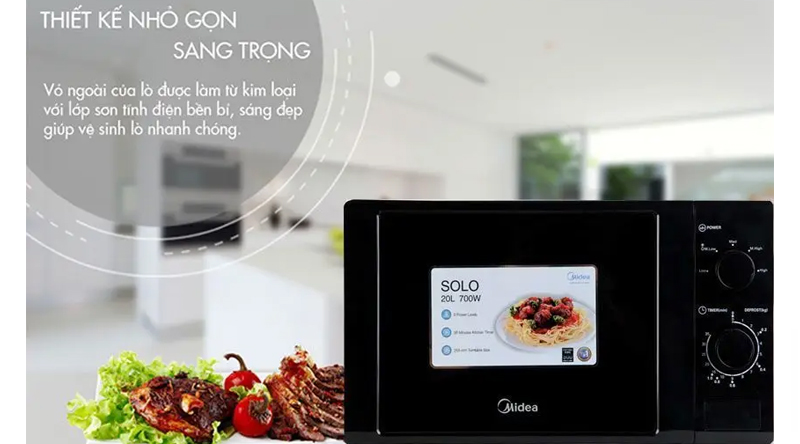 Lò vi sóng Midea MO-MM2019A có thiết kế nhỏ gọn với những đường nét tính tế và hiện đại, không chỉ giúp tiết kiệm tối đa không gian phòng mà còn tô điểm thêm vẻ ưa nhìn cho căn bếp của bạn.