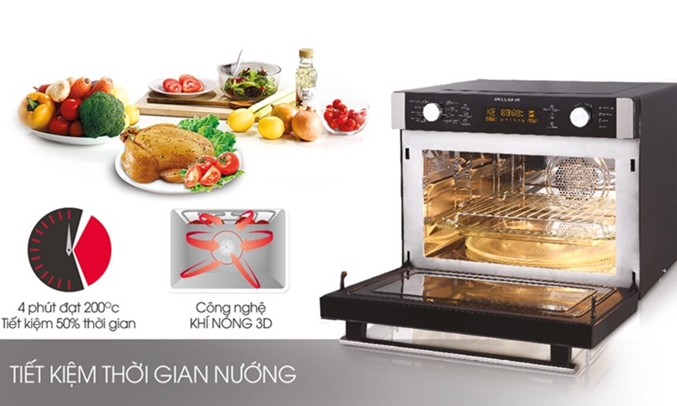 Lò vi sóng làm chín mềm thức ăn từ trong ra ngoài, rồi nướng sau cùng làm giòn và vàng đều. Rút ngắn thời thời gian nướng 50%.