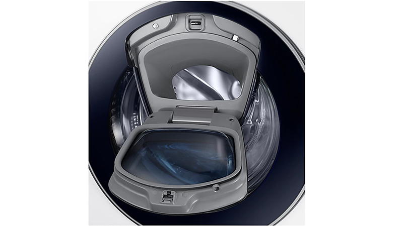 Đối với những loại máy giặt cửa trước thông thường, chúng ta không thể cho quần áo vào khi máy giặt đang trong chu trình giặt. Tuy nhiên, vào những lúc tất bật, bạn có thể bỏ sót quần áo và phải giặt chúng ở mẻ giặt sau. Máy giặt thông minh Samsung AddWash đã ra đời được tích hợp sẵn cửa phụ để người dùng thuận tiện đưa thêm đồ vào khi máy đang hoạt động, hoặc thêm bột giặt hay nước xả vải mà không cần phải rút nước máy giặt và mở cửa chính.